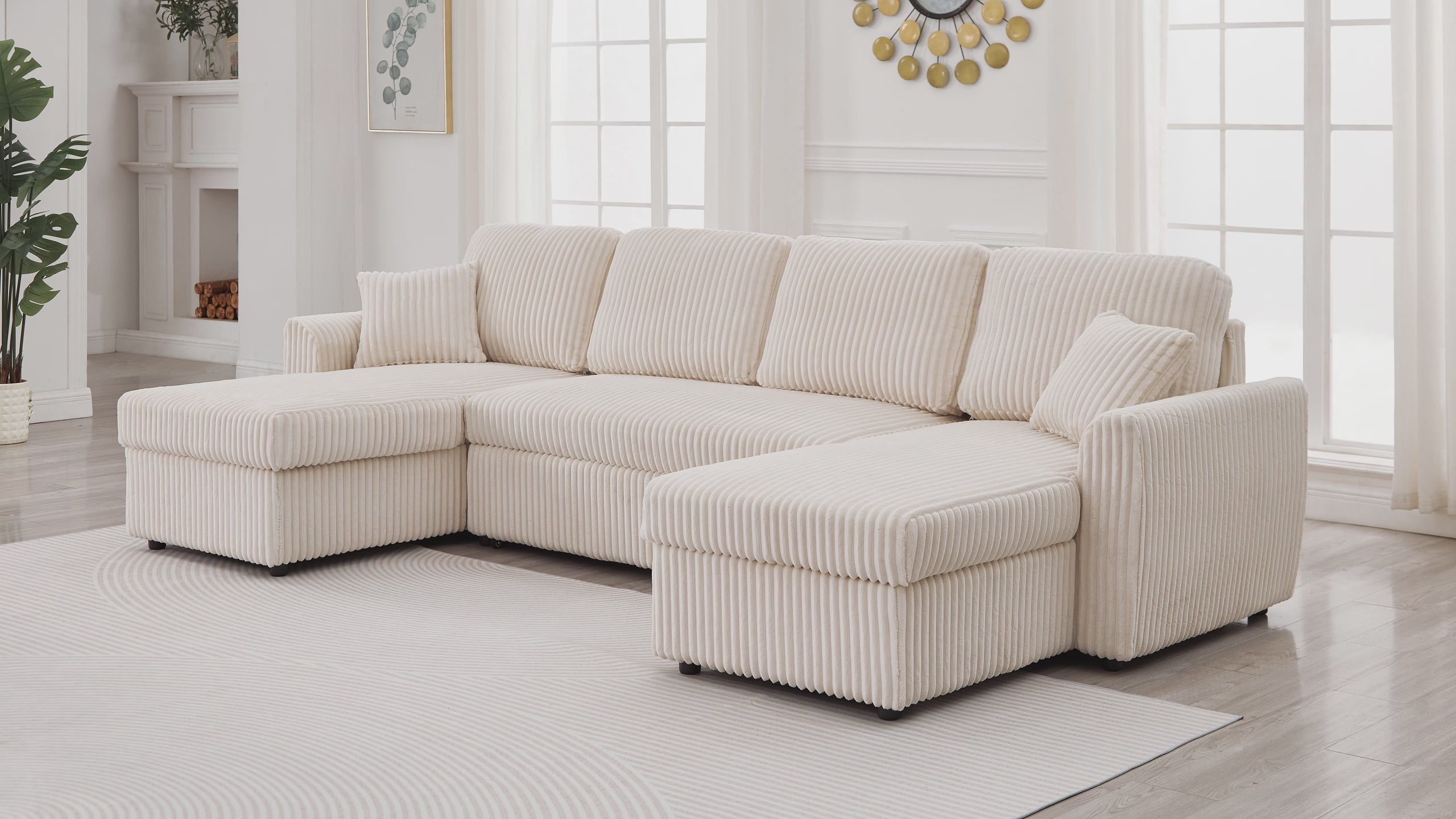 Canapé panoramique convertible avec coffres en velours côtelé épais beige ADRYEN Prix de vente769,00 €