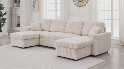 Canapé panoramique convertible avec coffres en velours côtelé épais beige ADRYEN
