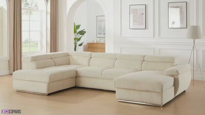 Canapé panoramique convertible avec coffre en velours côtelé épais beige MARIANO- Angle droit