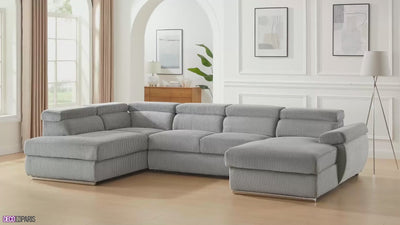 Transformez votre salon en un endroit chaleureux et confortable avec le canapé d’angle droit convertible avec coffre de rangement en velours côtelé épais gris MARIANO !