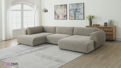 Le canapé panoramique convertible TILDA en velours gros côtelé taupe est la solution parfaite pour créer un intérieur à la fois cosy et élégant, alliant confort, style et fonctionnalité.