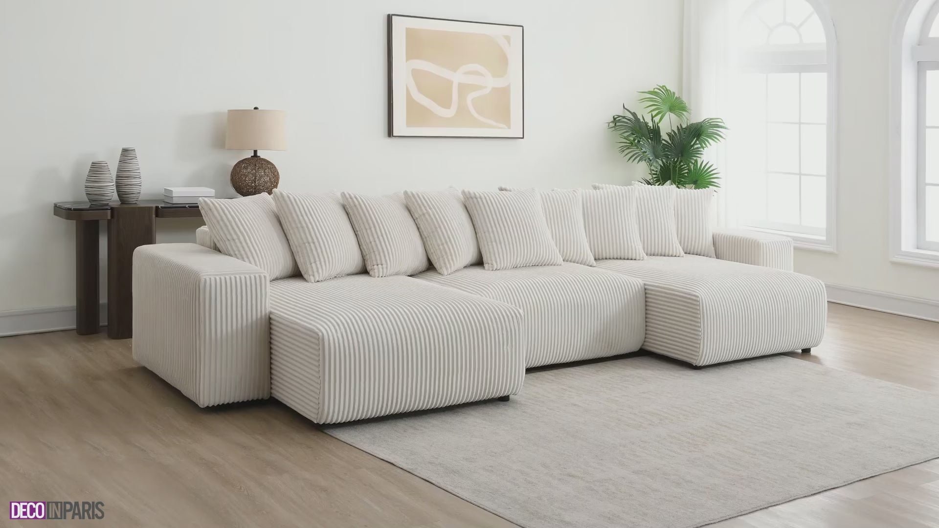 Canapé panoramique réversible convertible avec coffre en velours côtelé épais beige NOELIA Prix de vente1.449,00 € Prix normal1.999,00 € - 28%