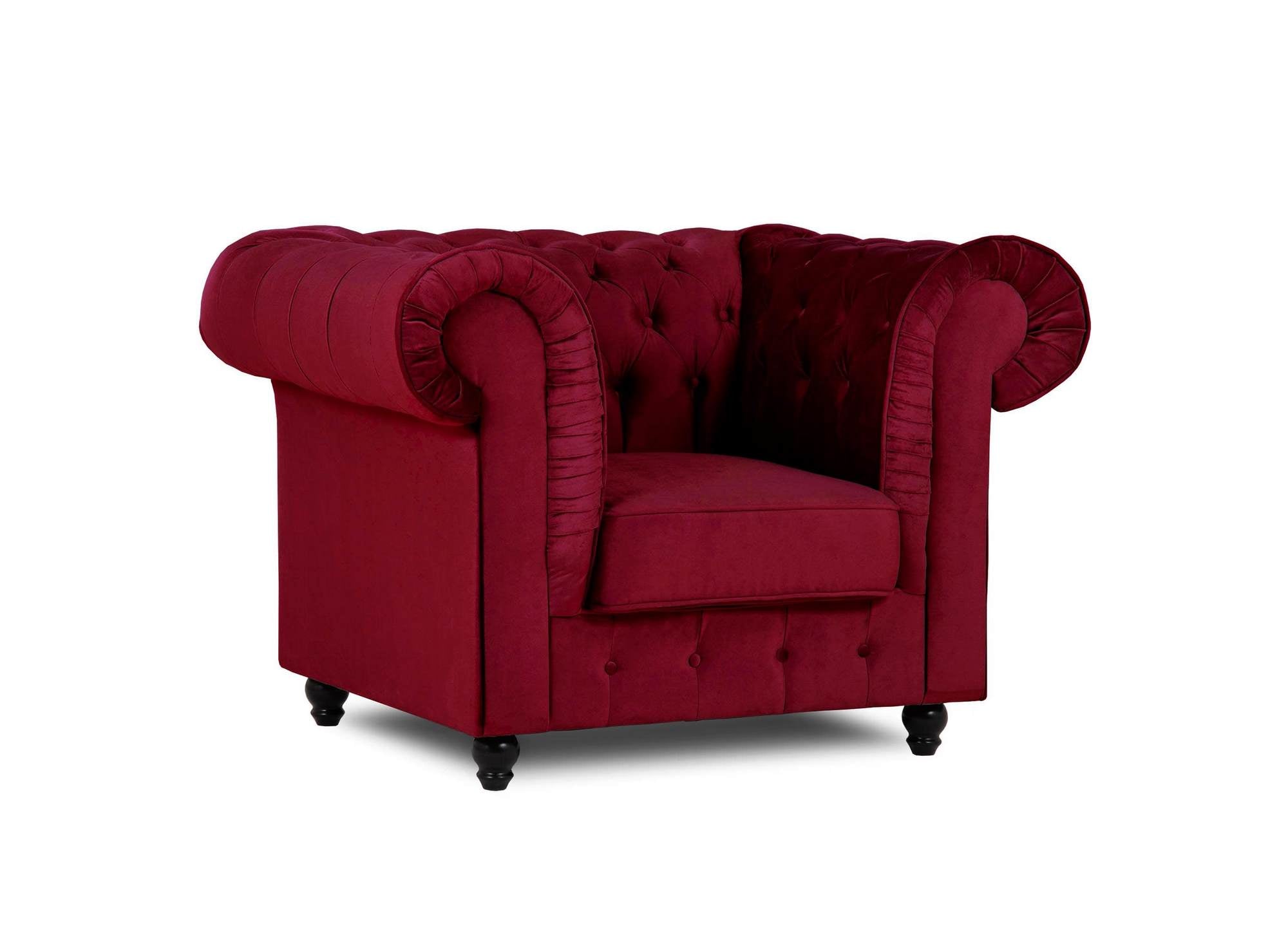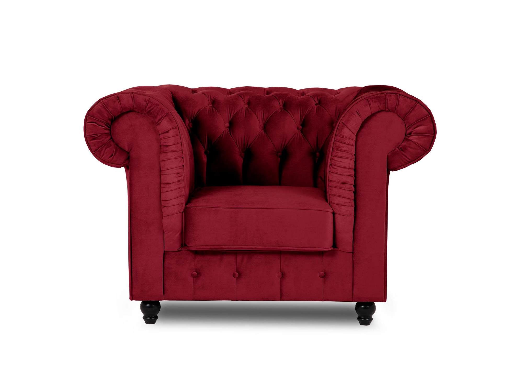 Succombez au design mythique de notre fauteuil chesterfield en velours rouge WILSTON.
