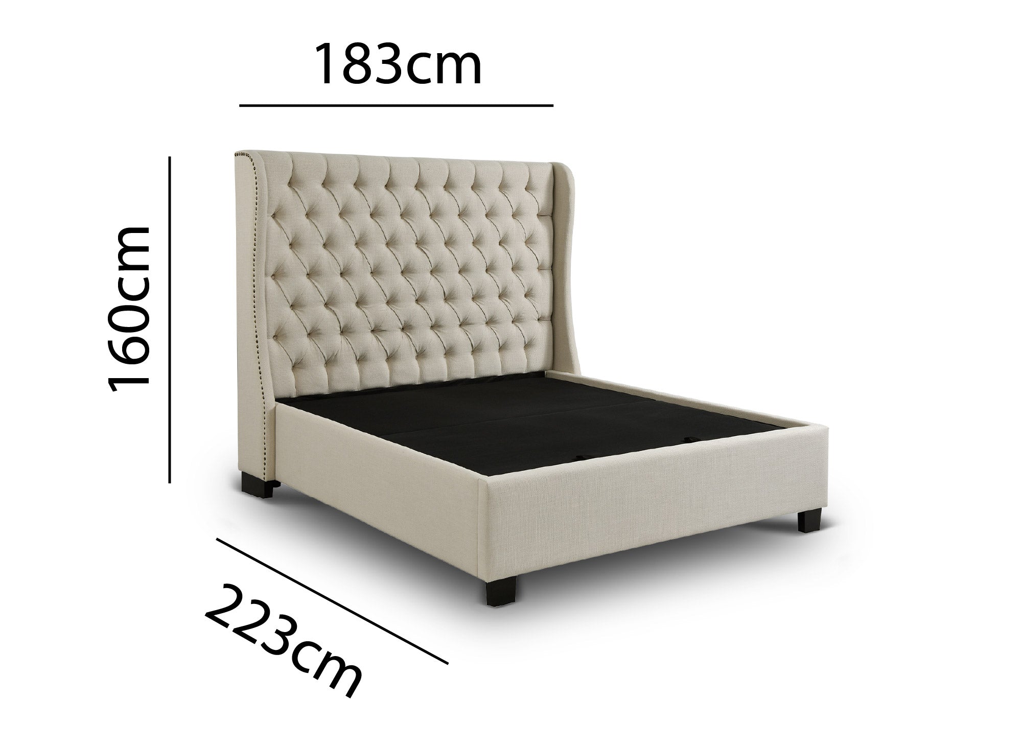 Lit coffre capitonné en tissu lin beige FLORINE 160 x 200 cm