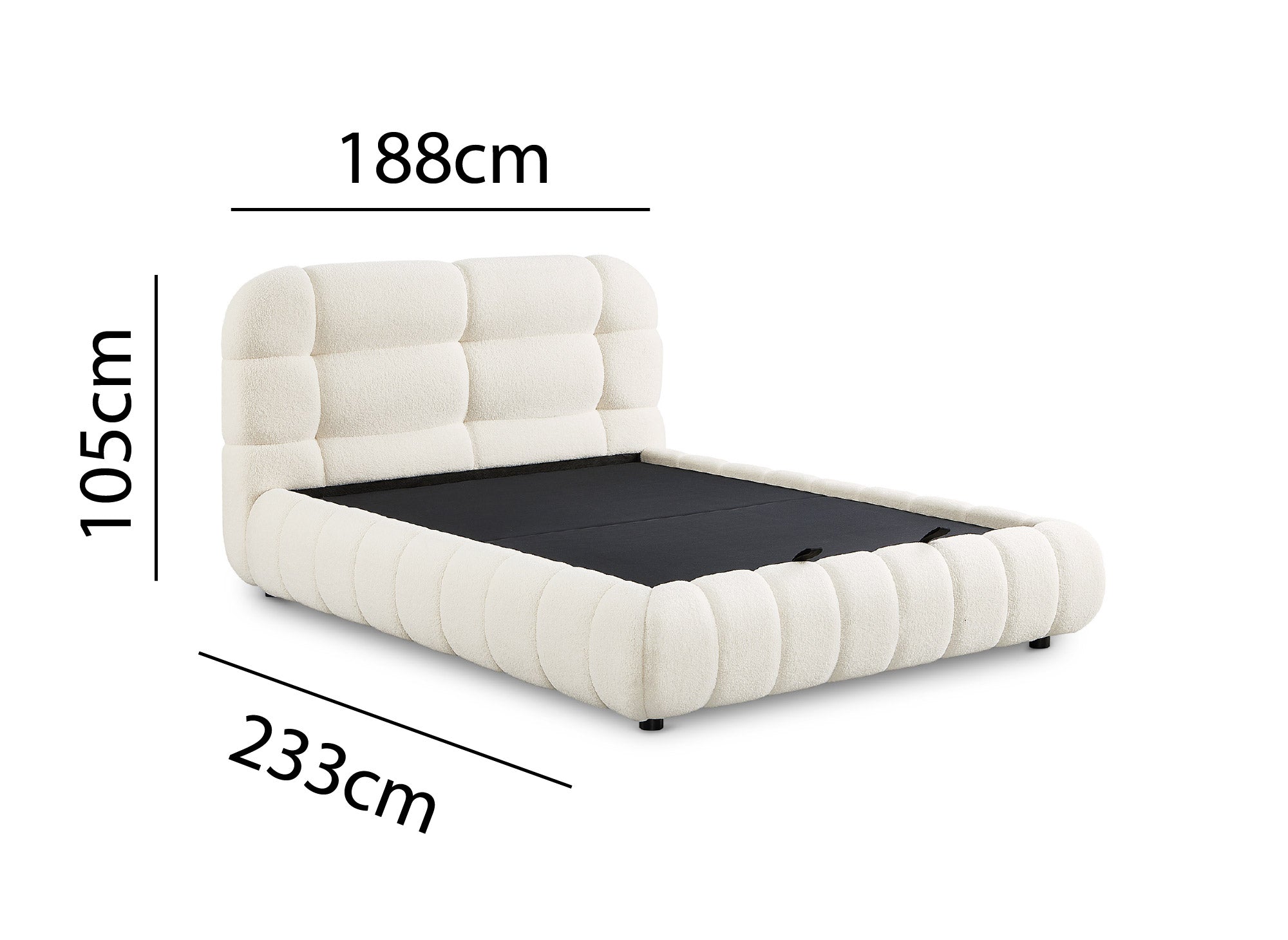 Optez pour l’élégance naturelle et la praticité du lit coffre en tissu bouclette écru YOURI et transformez votre chambre en un véritable cocon de confort et de style.