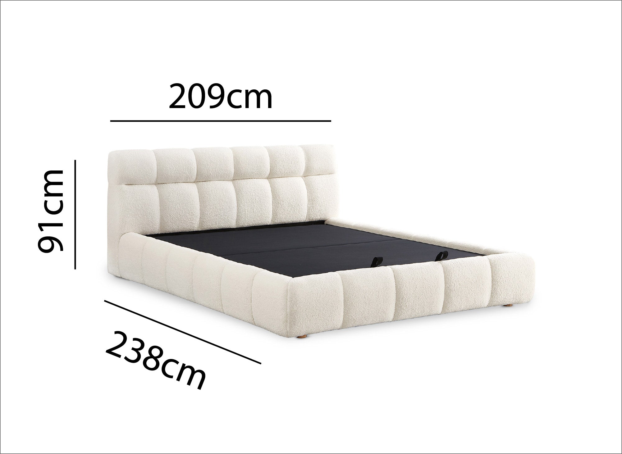 Ajoutez une touche cosy à votre chambre avec le lit coffre en tissu bouclette écru 180x200 cm GEORGINA .