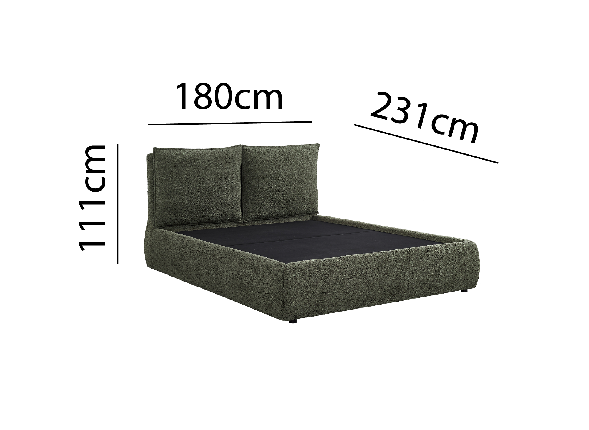 Lit coffre en tissu bouclette vert olive 160x200 cm MELY
