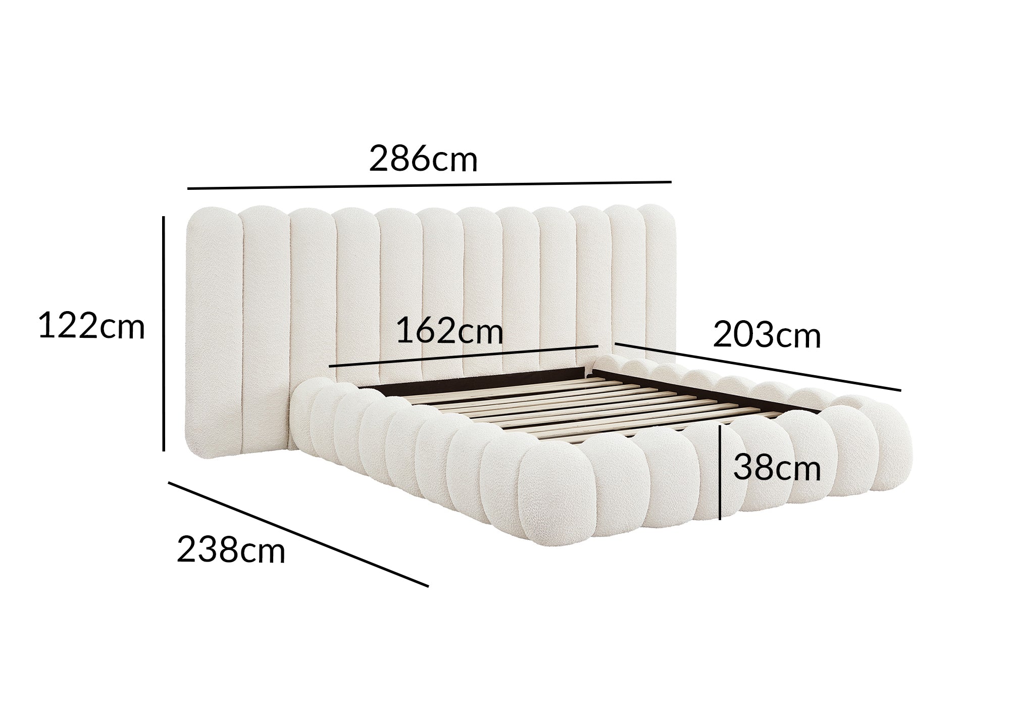 Lit double en tissu bouclette beige 160x200 cm GRETA - DécoInParis