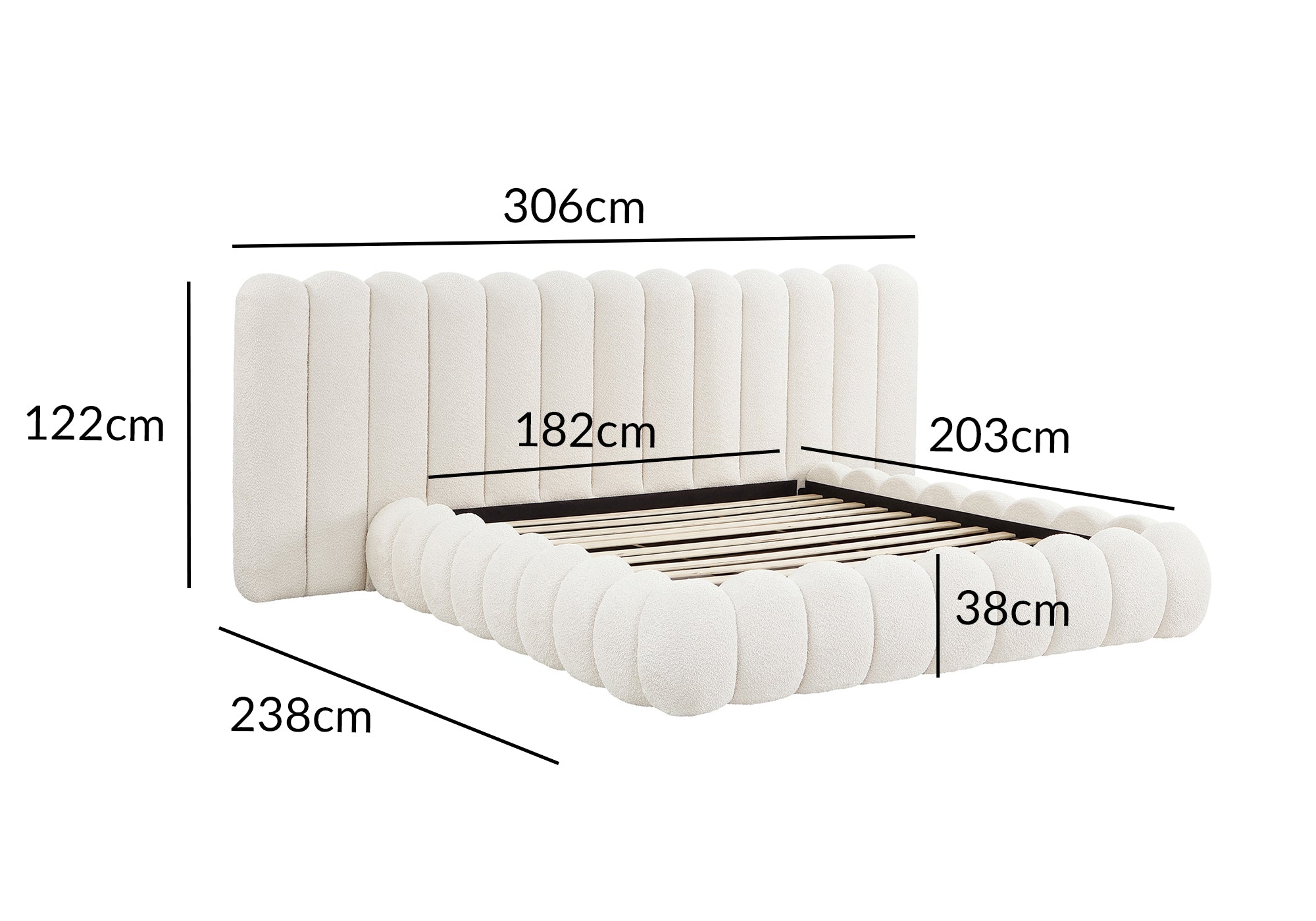 Lit double en tissu bouclette beige 180x200 cm GRETA