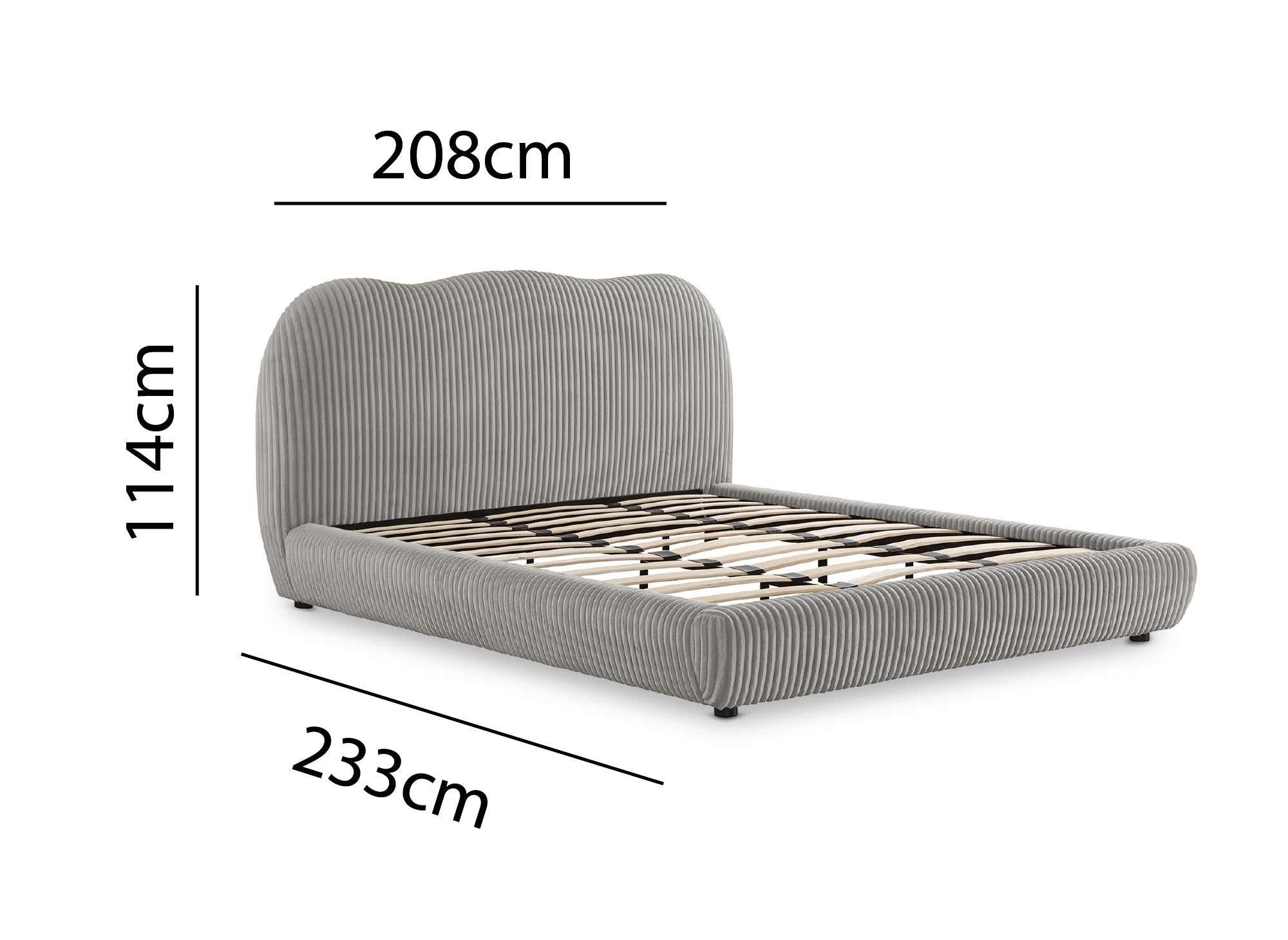 Élégance et confort s'allient parfaitement dans le lit double en velours côtelé épais gris 180x200cm SARA, idéal pour apporter une touche de douceur à votre chambre. Sa forme arrondie et sa tête de lit subtilement ondulée ajoutent un charme intemporel à votre espace de repos.