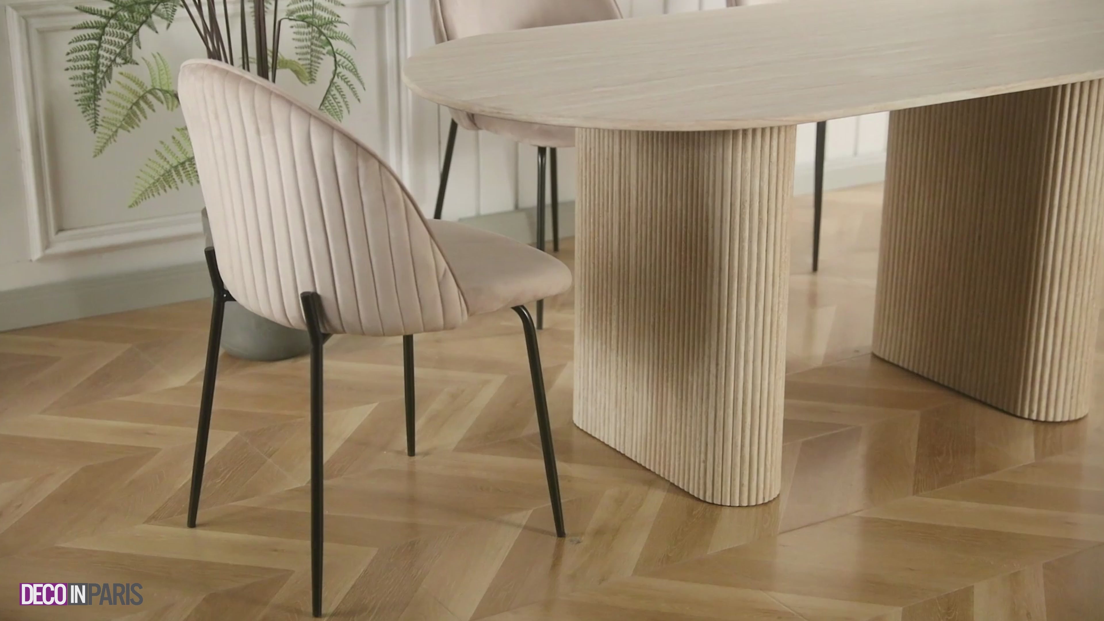Apportez de la couleur et du style à votre pièce avec nos chaises en velours ARABEL, tout en les associant avec notre table MELISSA afin de créer un style unique qui vous correspond !