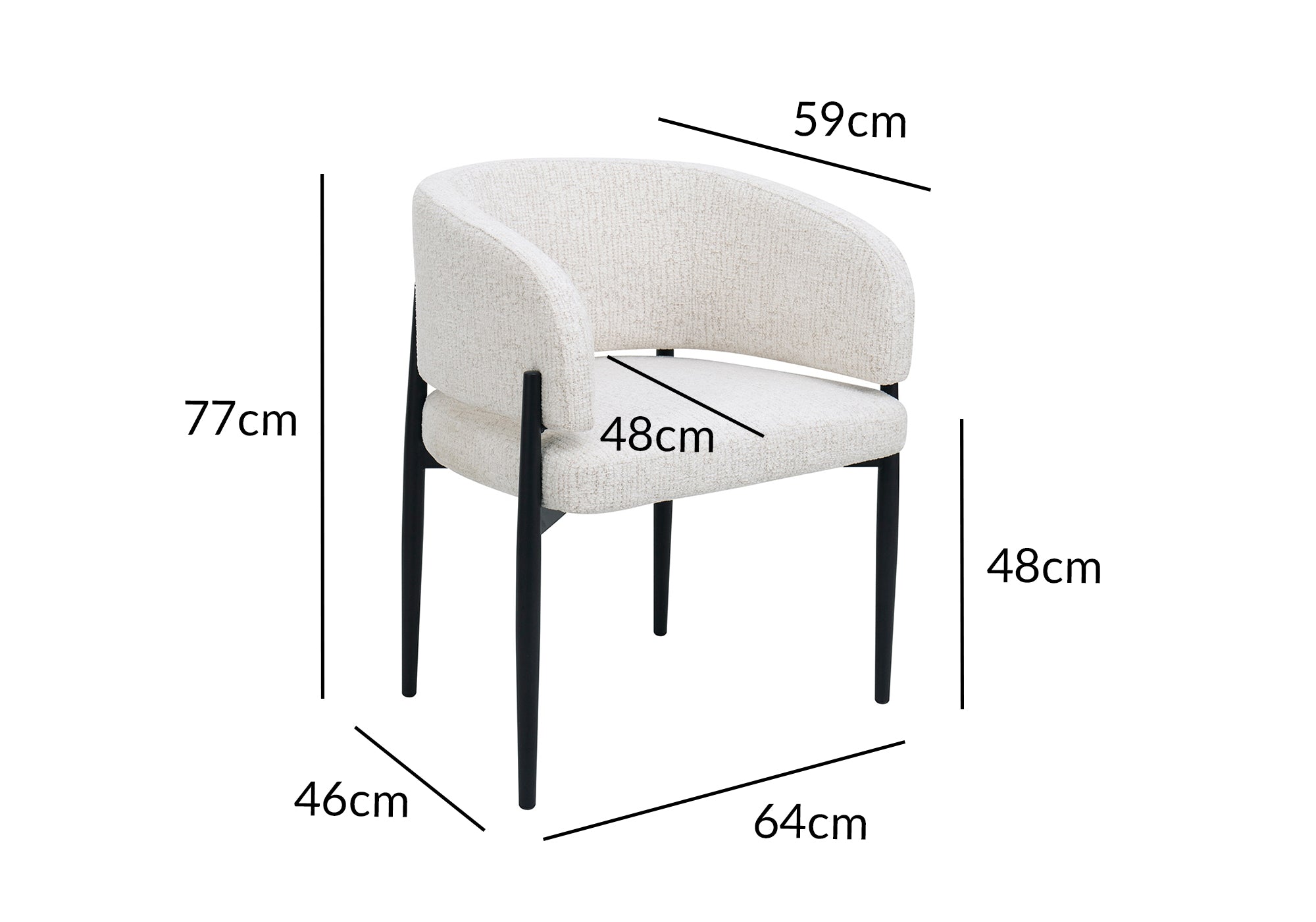 Son dossier arrondi et son assise moelleuse assurent un excellent maintien, idéal pour accompagner vos repas ou moments de détente. Les pieds fins en métal noir ajoutent une touche moderne et contrastée, soulignant le raffinement de ses lignes.