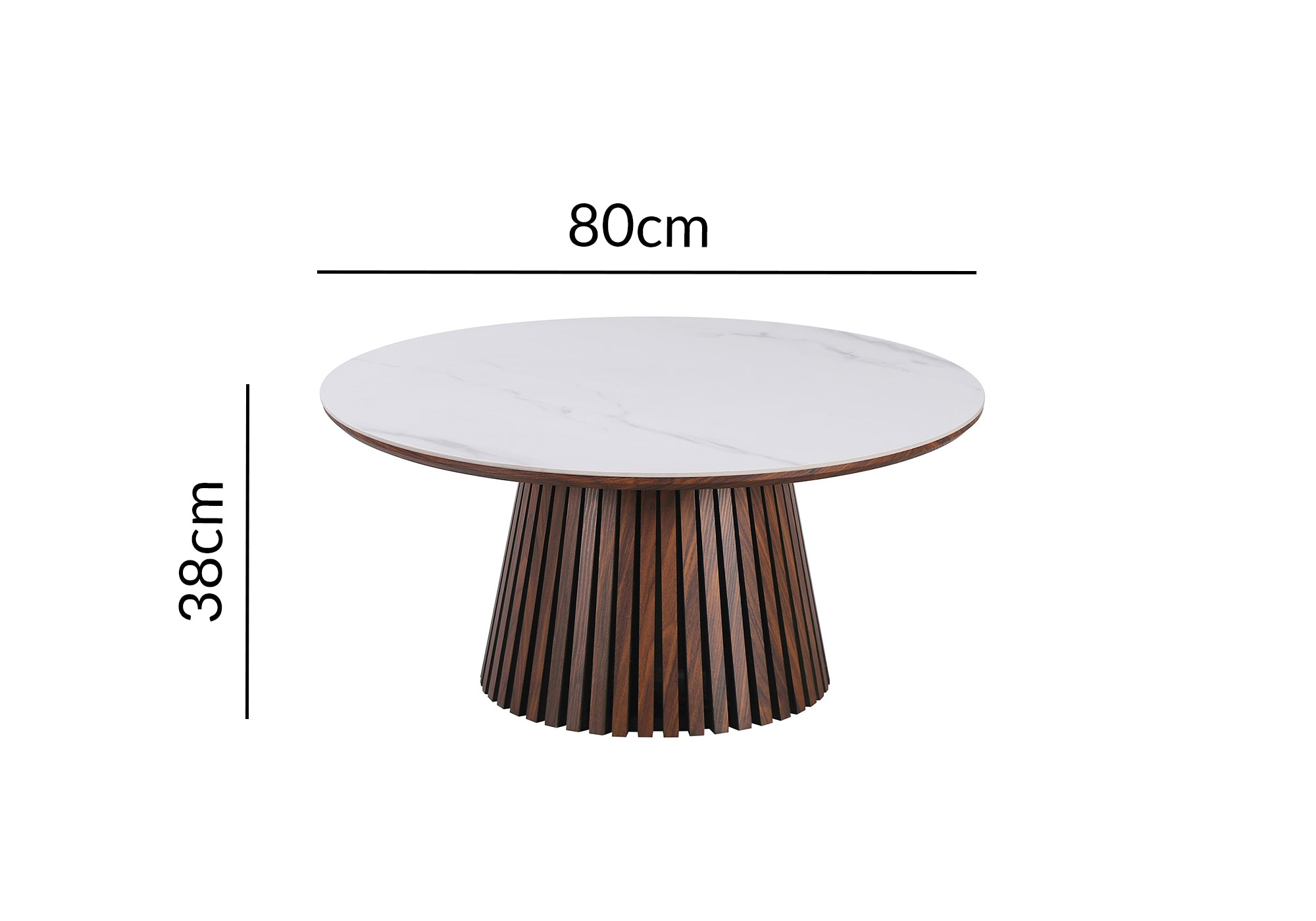 Table basse ronde en bois foncé plateau en céramique blanc HEKA